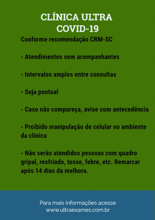De acordo com as recomendações do Conselho de Medicina de Santa Catarina e Conselho Federal de Medicina e Ministério da Saúde, seguiremos as seguintes regras até segunda ordem: