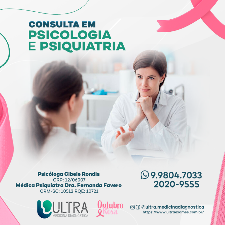 Agora na CLÍNICA ULTRA dispomos de profissionais especializados em PSICOLOGIA e PSIQUIATRIA Médica Psiquiatra Dra. Fernanda Fávero CRM-SC: 10512 RQE: 10721 Psicóloga Cibele Rondis CRP:12/06007